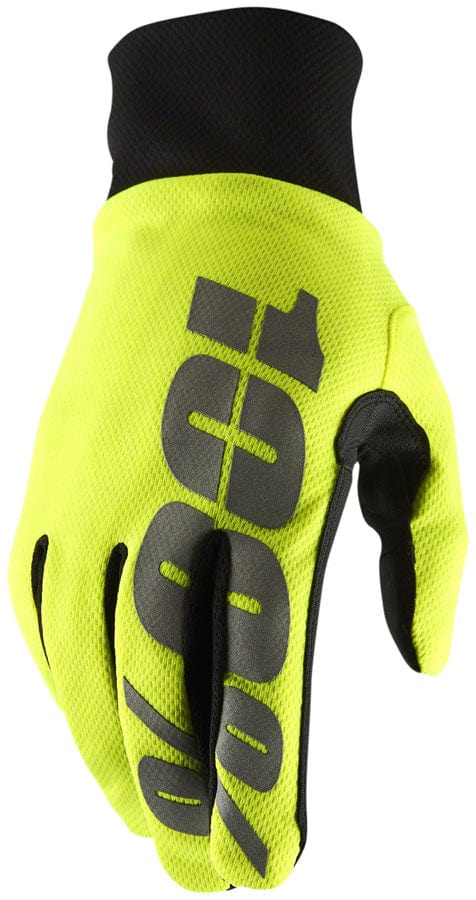 Mother Nature has met her match with the 100% Hydromatic low profile glove engineered to keep you going fast in cold wet weather. Laminated insulated shell with waterproof breathable insert blocks out the water and keeps they dry while maintaining exceptional dexterity and control of your bike.Single-layer PU palm for weather protection Laminated mock-mesh top of hand fabric Waterproof-breathable insert secured to outer layer for optimal gripping Silicone printed palm graphic increases grip in wet conditions Reflective graphic on top of hand offer a clean look with improved visibility Extended waterproof neoprene pull-on cuff for more coverage Conductive index finger & thumb keeps you connected with your digital device