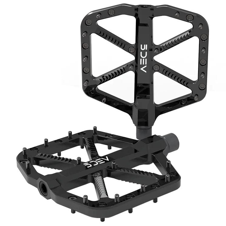- 5Dev's most aggressive and lightest pedal. At 343g, its low profile design, 24 pins and razor sharp 5 Axis Machined Design, makes it the ideal choice for the advanced rider looking for ultimate traction and performance from a flat pedal