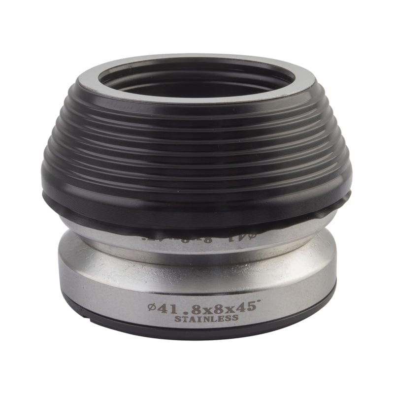 Integrated headset designed to raise the bars up a bit without an abundance of spacers. For integrated head tubes with 45 x 45 angular bearings. Titanium color stainless angular sealed bearings with logo and black seals. Includes: 2 sealed bearings top cap alloy compression washer 2mm / 5mm / 8mm spacers. 100% CNC machined AL6061-T6 cap. Available in two stack heights