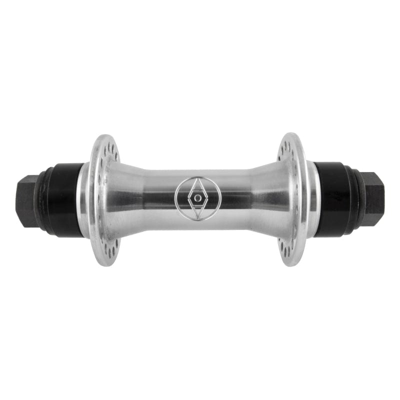 Low flange style BMX front hub. Drilled and machined collars for lighter weight. 6061-T6 body with a 7075-T6 heat treated hollow axle with 3/8` mm hollow bolts. 4 sealed cartridge bearings offer a smooth ride. 175g