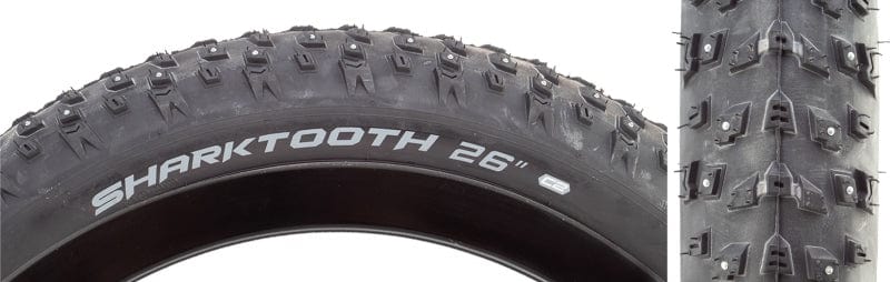 Three rows of longitudinal tread lugs arranged in a directional V design to maximize traction on ice snow and soft terrain. The triangle arrangement of the studs makes the tire stable and maximizes traction for confident riding in all conditions. 26x4.0 has 152 spikes while the 29x2.8 has 220 spikes. Studs have a tungsten alloy tip with zinc plated steel base for longevity