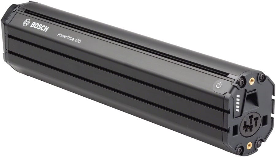 Bosch PowerTube batteries are integrated into the bike frame protecting them from the elements and concealing them from view. They are available for with the plug positioned for vertical or horizontal installation within the downtube which allows for a narrower or wider cross section when viewed from above.