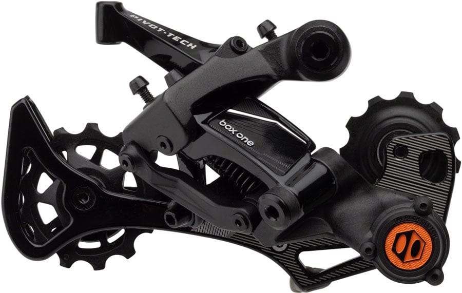The Box One Prime 9 Rear Derailleur takes the advantage of BOX's legacy 9-speed drivetrain but adds the advancements of a modern 1x; a fully adjustable Tri-Pack(TM) Clutch and an x-wide cage optimized for an 11-50T cassette. Forged construction steps up the durability and performance to an unparalleled level. Suited for the most demanding terrain.Designed for aggressive terrain Adjustable Tri-Pack™ Limited Slip clutch Precision sealed bearing pulleys Carbon-nylong composite knuckle Pivot-Tech™ cable stay Durable 3D forged linkages Forged inner and outer cage Compatible with standard derailleur hangers (non-direct mount)