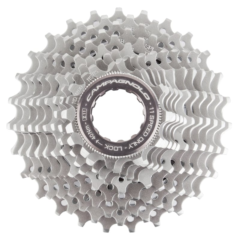 11-speed road race cassette. Ultra-Shift design. Stiff aluminum carriers. Aluminum lockring. Nickel-chrome finished steel sprockets. ~ 230g