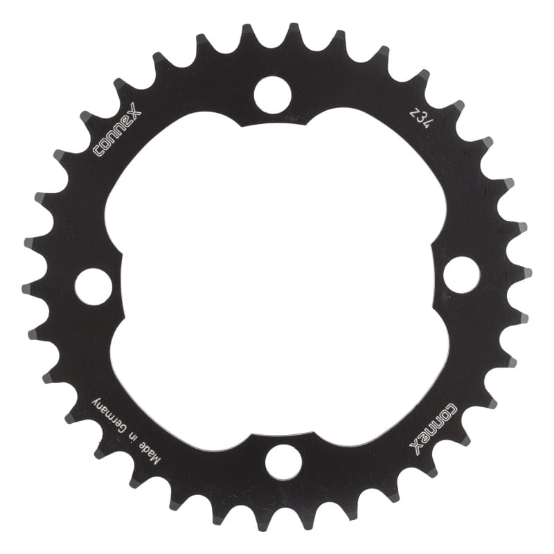 104mm - 4 bolt E-bike chainrings for use with Bosch-III Yamaha Brose and Bafang E-bike drivetrains. High quality hardened construction offers a better than original replacement/upgrade. Black KTL coating