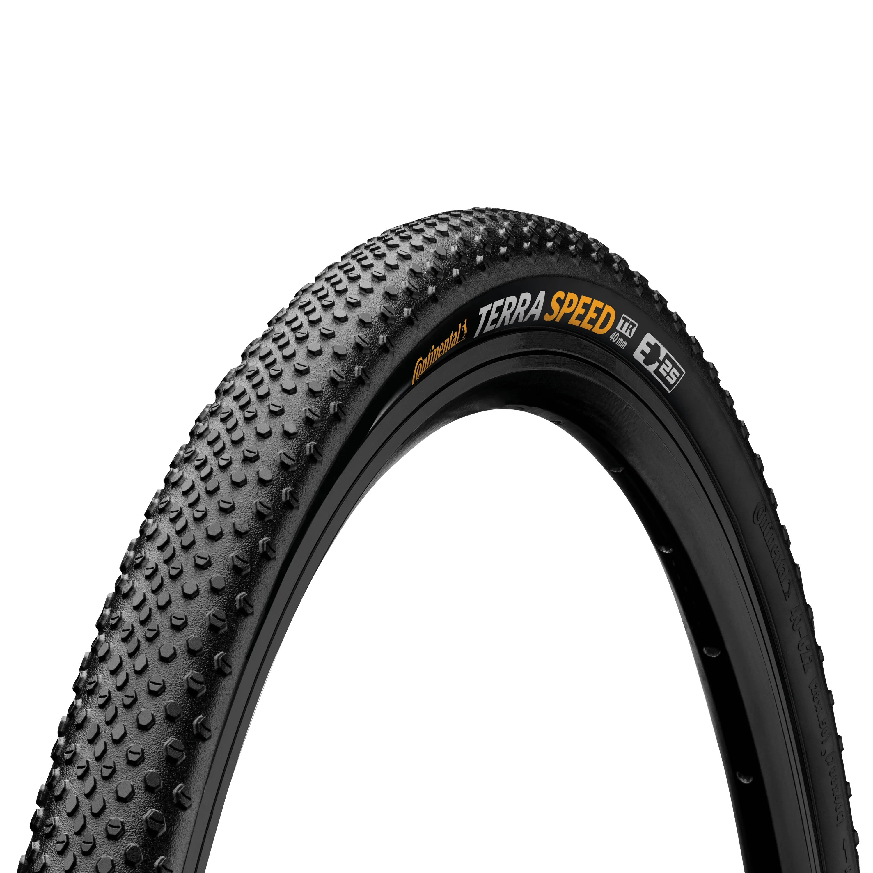 Push the limits on gravel racing and fast off-road rides with the Continental Terra Speed ProTection. Designed for riders who demand top speed without compromising reliability, this tire delivers the perfect blend of low rolling resistance, confident grip, and puncture protection. Its tightly spaced tread rolls fast on hardpack and tarmac, yet still holds traction when the route turns rough.
