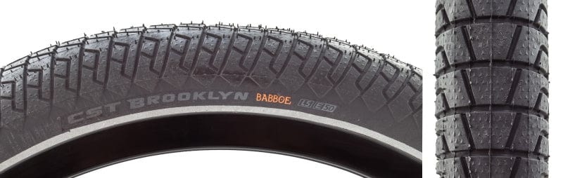 CST`s Brooklyn tires feature a fast rolling deeply siped tread with a micro-textured surface and durable sidewalls perfect for utility and cargo bikes . Thick EPS anti-puncture layer and reinforced sidewalls. EPS - Exceptional Puncture Safety offers an added layer of proprietary rubberized poly-fiber material between the tread and the casing to help prevent punctures. REF - Reflective sidewall striping or hot patch to aid in low light visibility. E - designated tires are designed to specifically withstand use on E-Bikes with an upgraded casing and bead