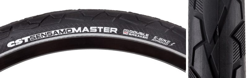 The Sensamo Master features CST`s Double Breaker protection and a fast rolling tread with heavy siping for water evacuation. The innovative anti-puncture protection does not diminish the tire’s flexibility or ride comfort and also gives you dependable protection for the commute. Textured sidewalls help prevent cuts and abrasions while file style tread on the shoulders improves corner traction in all weather. SC - Single compound one compound throughout the tread optimized for longevity and performance. DB - Double Breaker features both APL and EPS puncture protection for improved puncture resistance. REF - Reflective sidewall striping or hotpatch to aid in low light visibility