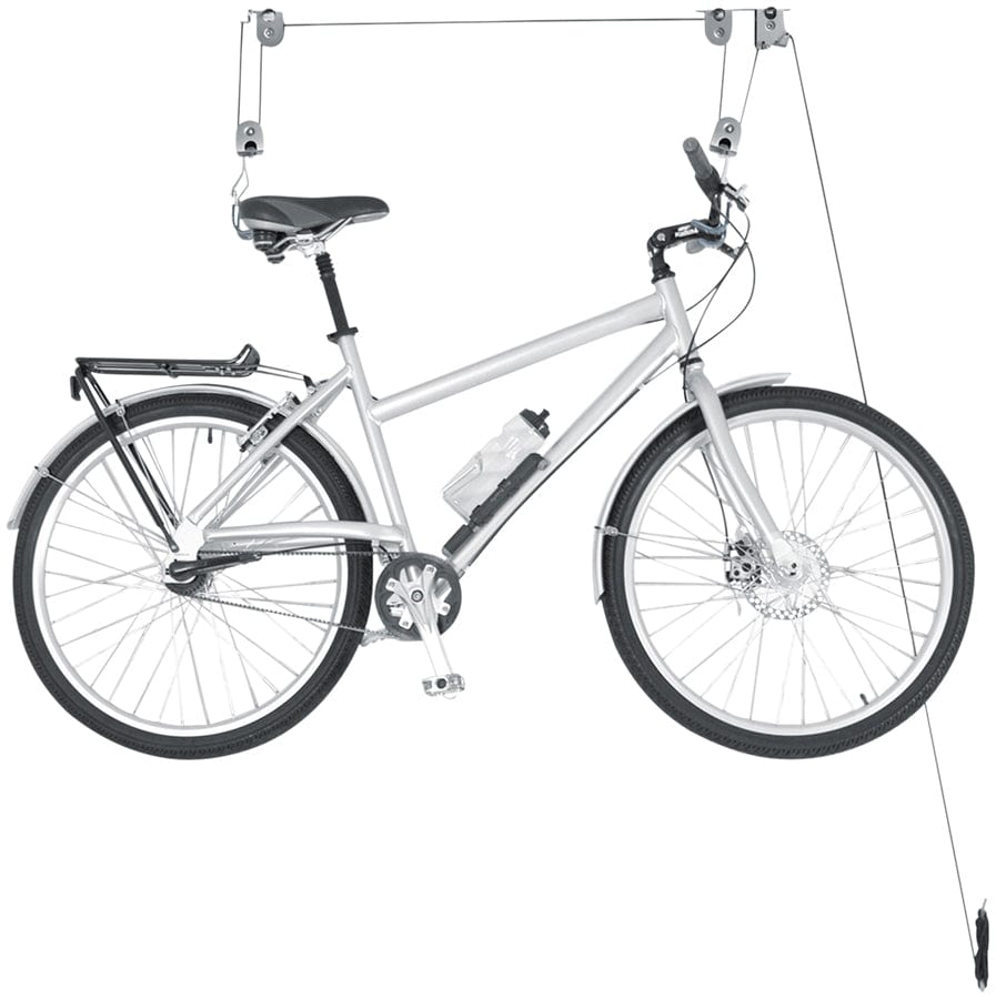 A ceiling hoist storage solution that can hold a bicycle ladder or kayak with included straps.Efficient pulley system helps raise and lower heavy item Auto-locking mechanism prevents accidental release Max ceiling height: 14-foot Canoe/kayak straps included