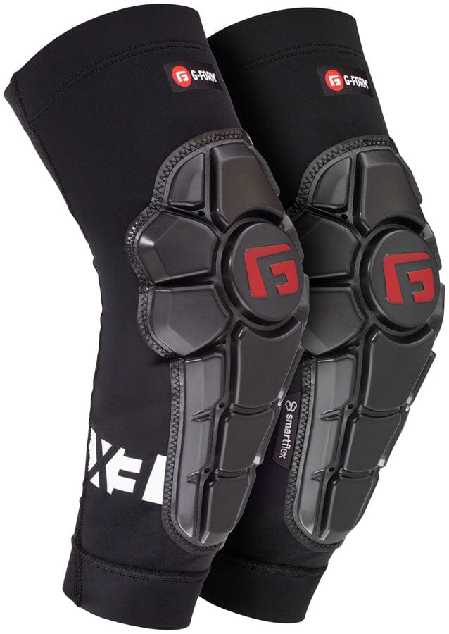 The G-Form Pro-X3 Elbow Guards provide comfortable and lightweight protection. Designed for trail all mountain and cross country riding these elbow guards feature G-Form's SmartFlex™ pad technology.SmartFlex™ pads offer form-fitting and lightweight protection that is flexible as you ride and hardens on impact Body-mapped impact-absorbing SmartFlex™ pads layered on top of a ventilated soft inner foam layer allowing for maximum protection comfort and breathability Compression sleeves with grippers at the top and bottom to keep guards in place Moisture-wicking UPF 50+ fabric Machine washable