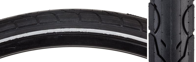 Smooth rounded tread with large water dispersion grooves provide greater straight-line speed traction and cornering confidence . Excellent commuter or recumbent tire. SRC - Standard Rubber Compound combines the best attributes of low rolling resistance extreme durability and tread longevity. PRC - Puncture Resistant Casing features Kenda`s Iron Cap belting beneath the tread. REF - Reflective sidewall striping or hotpatch to aid in low light visibility