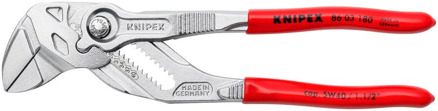 KNIPEX Pliers Wrench is a versatile tool that replaces a full set of inch and metric open-end wrenches. It features smooth jaws for damage-free installation of plated fittings making it ideal for working directly on chrome. This adjustable tightening tool is excellent for gripping holding pressing and bending applications. With zero backlash jaw surface pressure it prevents damage to sensitive components. The wrench offers multiple adjustment positions at the touch of a button and has a laser-etched scale for setting the wrench opening before gripping the workpiece. Made from chrome vanadium electric steel it is forged and oil-hardened for durability. The lever transmission greater than 10-1 provides strong gripping power and the jaws allow bolted connections to be tightened and released quickly using the ratchet principle.Replaces a full set of inch and metric open-end wrenches Smooth jaws for working directly on chrome Multiple adjustment positions and laser-etched scale for metric and inch markings Made from chrome vanadium electric steel; forged and oil-hardened