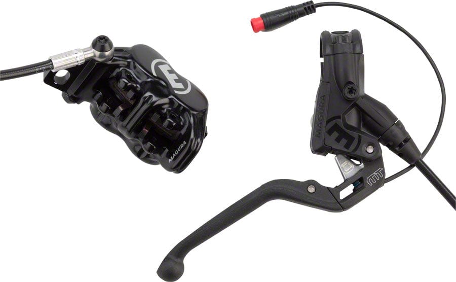 This moto-style 4 piston disc brake includes the switches necessary to activate brake lights and drive cut-out on compatible e-bikes.4 piston stopping power Flip-flop lever design works on right or left side with either brake Electronic switch connects to brake lights and automatically cuts electric drive 3mm allen actuated reach adjust Royal Blood mineral oil MagnetiXchange system allows easy pad changes Designed for use with 2.0mm thick Magura rotors