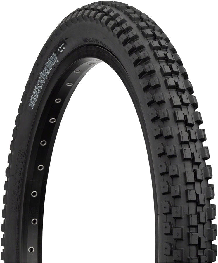 The Maxxdaddy provides excellent traction on the BMX track trails and dirt jumps.Staggered tightly spaced center knobs roll fast over varied terrain Dual channel shoulder lugs provide cornering traction Intended use: dirt