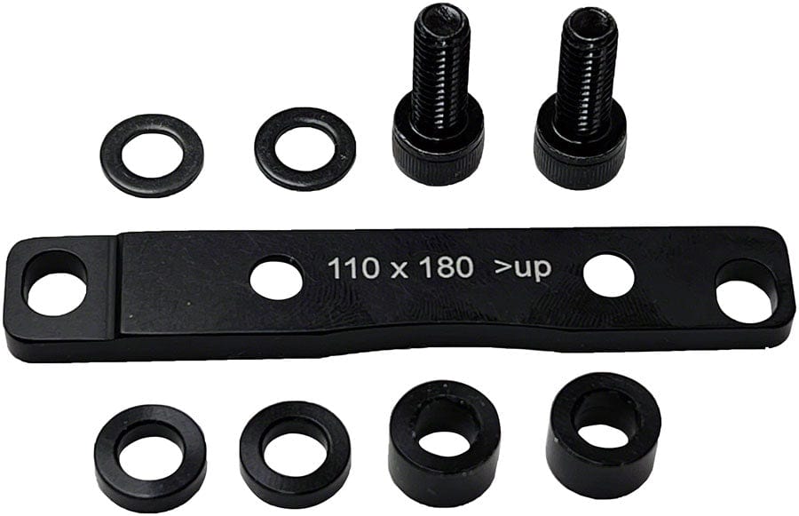 Flat mount disc brake adapters designed to accommodate different configurations of the Baxter suspension fork.