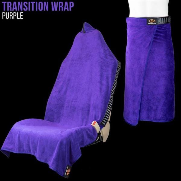 The Transition Wrap is a multipurpose changing towel and seat cover to fix this very problem. Just zip up the removable hoodie and slip over your headrest for a secure mount to your seat post workout. When you're ready to change from work clothes to workout clothes at the local trail, just secure the belt around your waist and the towel will stay put! It’s machine washable, built to last a very long time, and comes in a bunch of fun colors too. For more information, click here.