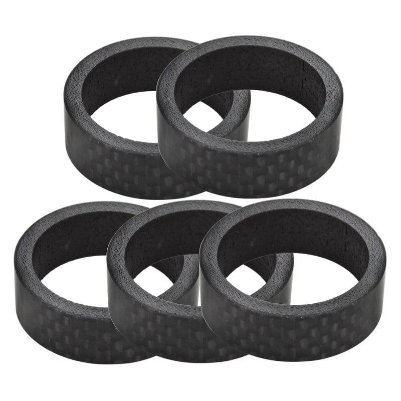 3K carbon fiber 1` and 1-1/8` headset spacers. Non-keyed design. 5 spacers per bag