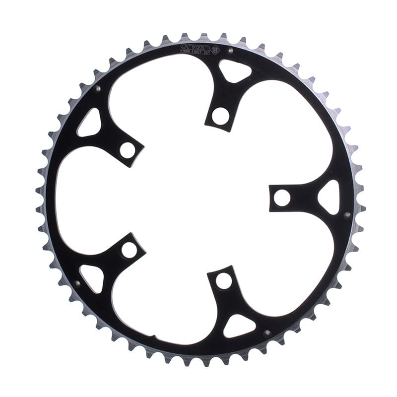 CNC machined AL6061-T6 alloy construction. 8 9 and 10 speed compatible. Available in ramped/pinned and standard styles. Black anodized finish with machined silver teeth. Made in the USA