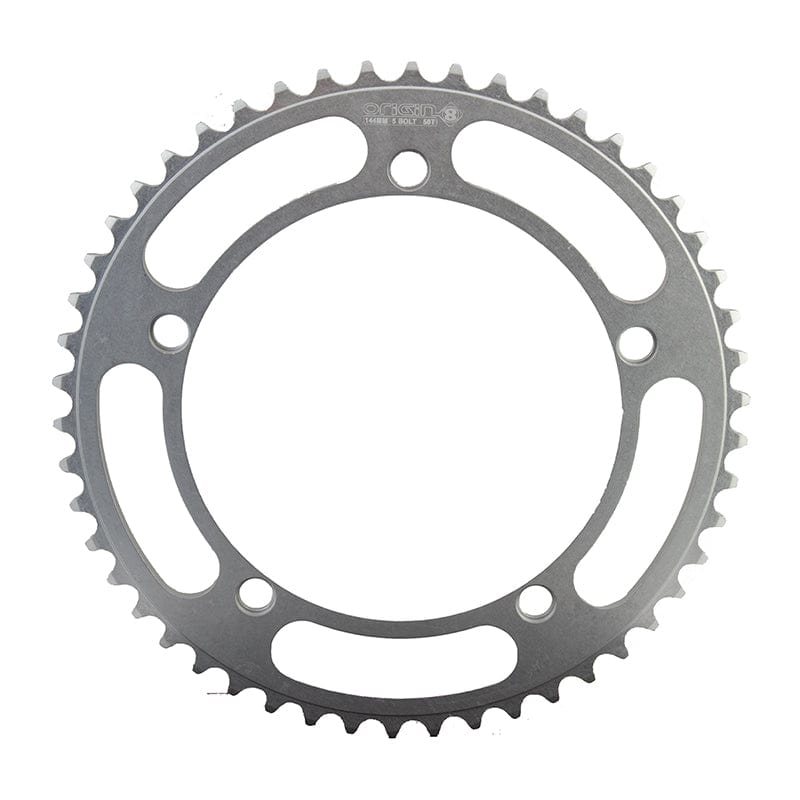CNC machined AL6061-T6 alloy construction. Great for all single speed applications. 5-Bolt 144mm BCD pattern. Silver anodized finish. Made in the USA