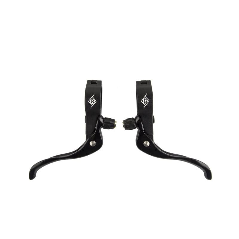 Compatible with caliper and cantilever brakes. Forged AL6061-T6 alloy construction. Ergonomic 2 finger lever design. Return spring with reach and cable adjustment. Hinged clamp allows installation without removing grips/tape. Fits 1.5-1.6mm brake cable type. 90g pair