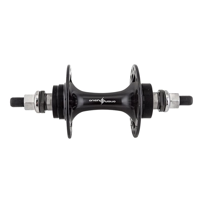 Sealed cartridge bearings. High flange design. Spacing: 100mm frt 120mm rear. HOLLOW CORE lightweight heat-treated axle. New lighter design. Front hubs use 9x1 thread pitch while Rear hubs use a 10x1 axle