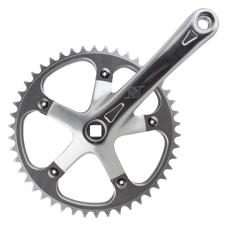 Single speed crankset. Forged AL6061-T6 alloy crankarms. CNC alloy 1/8` 46 tooth chainring. 42mm chainline with 103mm JIS BB. Does not include JIS square taper BB . Weights do not include BB