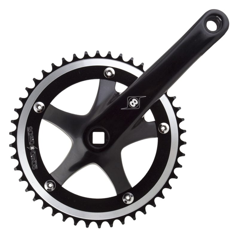 Single speed crankset. Forged AL6061-T6 alloy crankarms. CNC alloy 1/8` 46 tooth chainring. 42mm chainline with 103mm JIS BB. Does not include JIS square taper BB. Weights do not include BB