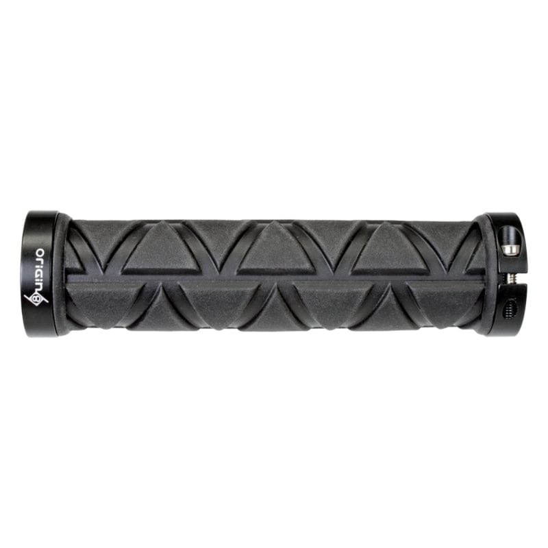 Soft comfortable Kraton rubber. Tapered triangle shape. Locking alloy anodized end clamps