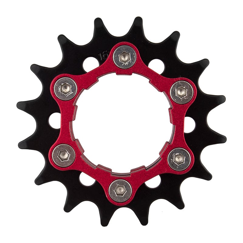 Dual purpose single speed cassette cog or 6-bolt disc fixed cog. Compatible with Shimano cassette bodies and 6-bolt disc rotor mounts. Great fixed gear conversion for 6-bolt disc hubs. CNC machined AL6061 Zero-Flex base. 3/32` forged CroMo cog