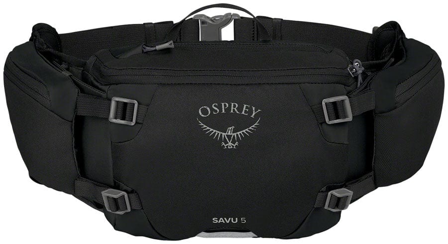 Made to suit the mountain biking minimalist the Savu 5-liter waist pack is ideal for quick laps on local singletrack or gravel trails. Two rigid pockets make it easy to pull and replace water bottles as you pedal while an angled hipbelt and compression straps provide max stability over every trail. Want to go even more svelte? Each water bottle sleeve can tuck away when not needed to provide a streamlined pack.AirScape backpanel with contouring lumbar wrap provides maximum stability Dual snap-in-place or tuck-away water bottle sleeves Easily accessible zippered main compartment with internal tool organization Dual zippered hipbelt pockets Blinker light attachment with reflective graphic Easily accessible sunglasses/phone pocket Airmesh wrap hipbelt with zippered fabric pockets provide stability and breathability ErgoPull waist strap closure system allows for proper snug and stable fit