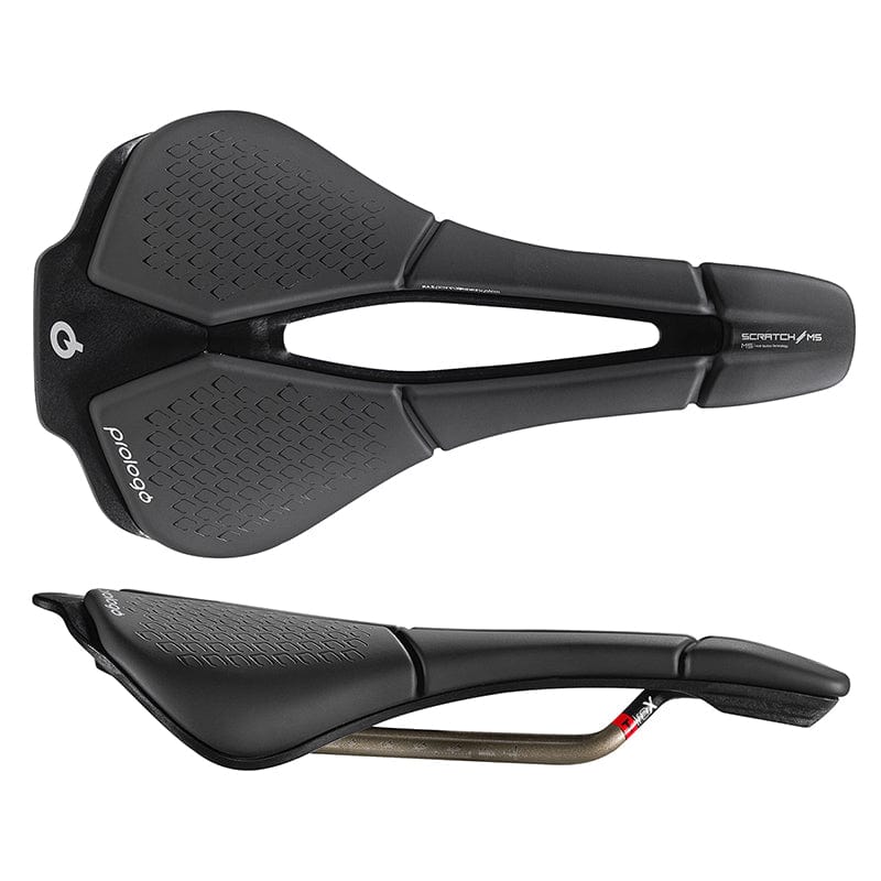 Scratch M5 is the new line of saddles that use 4.0 technologies; innovative in terms of size shape and ergonomics they are suitable for multiple uses from road and off-road to Triathlon. The Round Shape of the M5 allows the pelvis a natural rotation creating stability and support for the lumbar areas and distributes pressure over a greater area. MSS Multi Section System - This technology provides three different individual zones mapped and separated along the saddle each composed of different interactive foams and single-cell padding. Nack models feature a Nano Carbon composite rail paired with reinforced seat clamp area for the perfect fusion of performance and reliability. Tirox model features an aerospace light Ti-Alloy rail that provides a balance of weight and strength. PAS - features a channel in the seat to alleviate pressure and numbness in the pelvic region by promoting healthy perineal blood flow. New T-Shape base offers comfortable unisex design