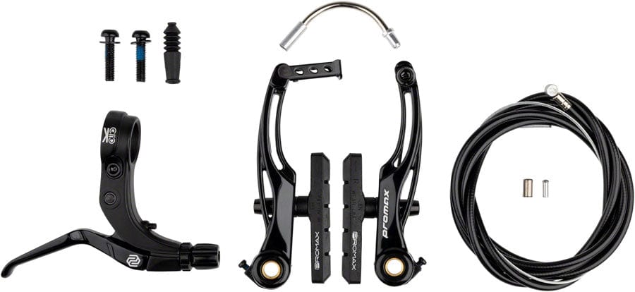 The Promax P-1/Click V-Point Linear Pull Brake Kit is a lightweight race proven BMX brake balancing strength durability and performance.Brake kit includes one set of color-matched Promax P-1 brake arms one Click V-Point brake lever standard stainless steel Promax brake cable B-2 airflow brake shoes and mounting hardware
