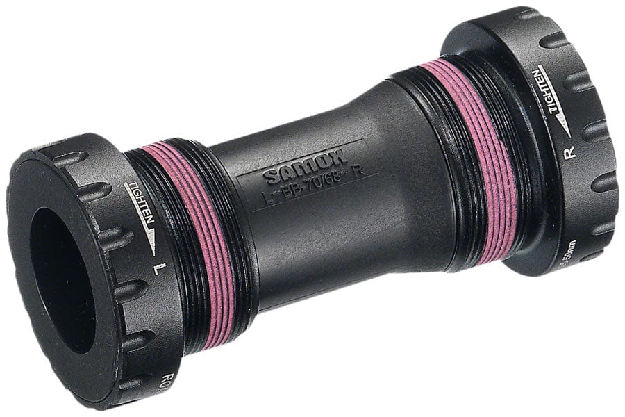 Samox Threaded bottom bracketRugged and lightweight aluminum external cups sealed cartridge bearing are smooth and protected from dirt and moisture Internal spindle spacer adds additional protection