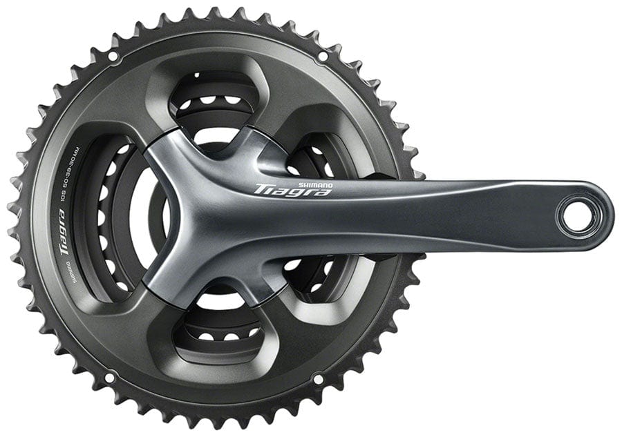 Shimano Tiagra FC-4703 CranksetsCrankset with integrated 24mm axle decreases weight and improves rigidity Aluminum construction with anodized finish 45mm chain line 110mm/74mm BCDs 158.8 Q-factor