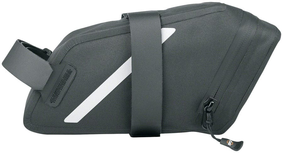 A must-have for mountain and gravel bikers: The Trail Saddle bag is an essential companion on trails and meadow tracks. Thanks to the fully welded design and the durable outer material the bike bag is very robust. The zip with the practical Easyzip function is welded to protect the equipment from moisture and dirt. The rear side of the bag is reinforced and therefore allows easy opening of the saddle bag. Two inner pockets made of robust mesh fabric keep keys or money safe. The SKS saddle bag comes with non-slip hook and loop fasteners that ensure secure mounting under the bike saddle. These can be individually cut to size and replaced. Reflective elements and a rear light bracket provide greater visibility even when out riding at dusk.