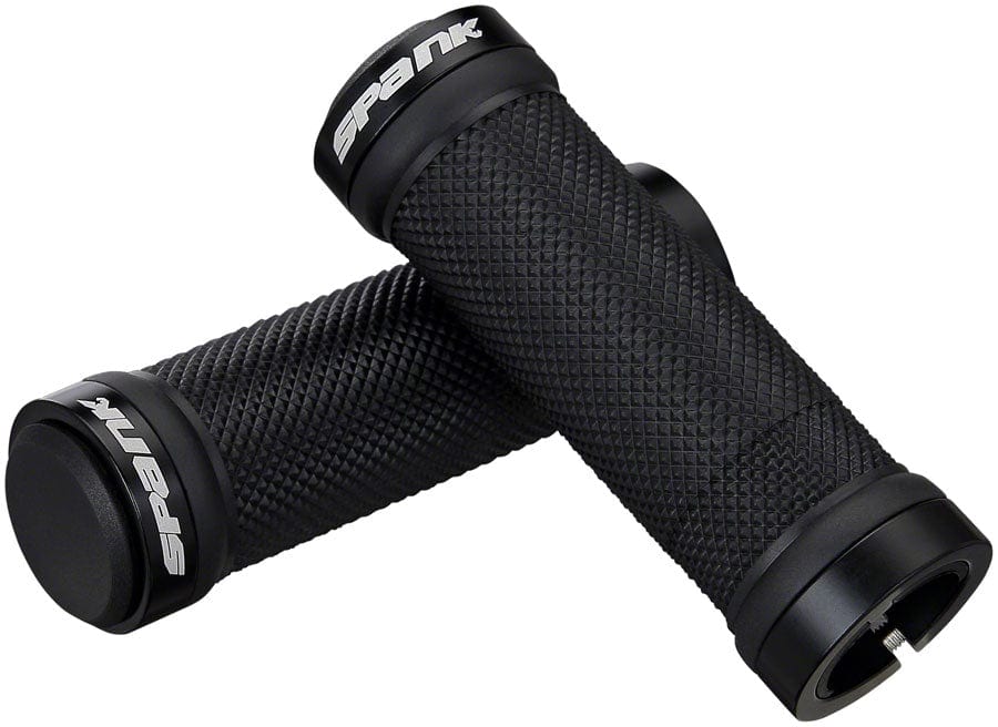Spank Spoon Grom grips feature a sticky compound in 100mm length specifically designed for children’s hands.Tacky rubber fixed with 2 anodized alloy clamp rings increases grip
