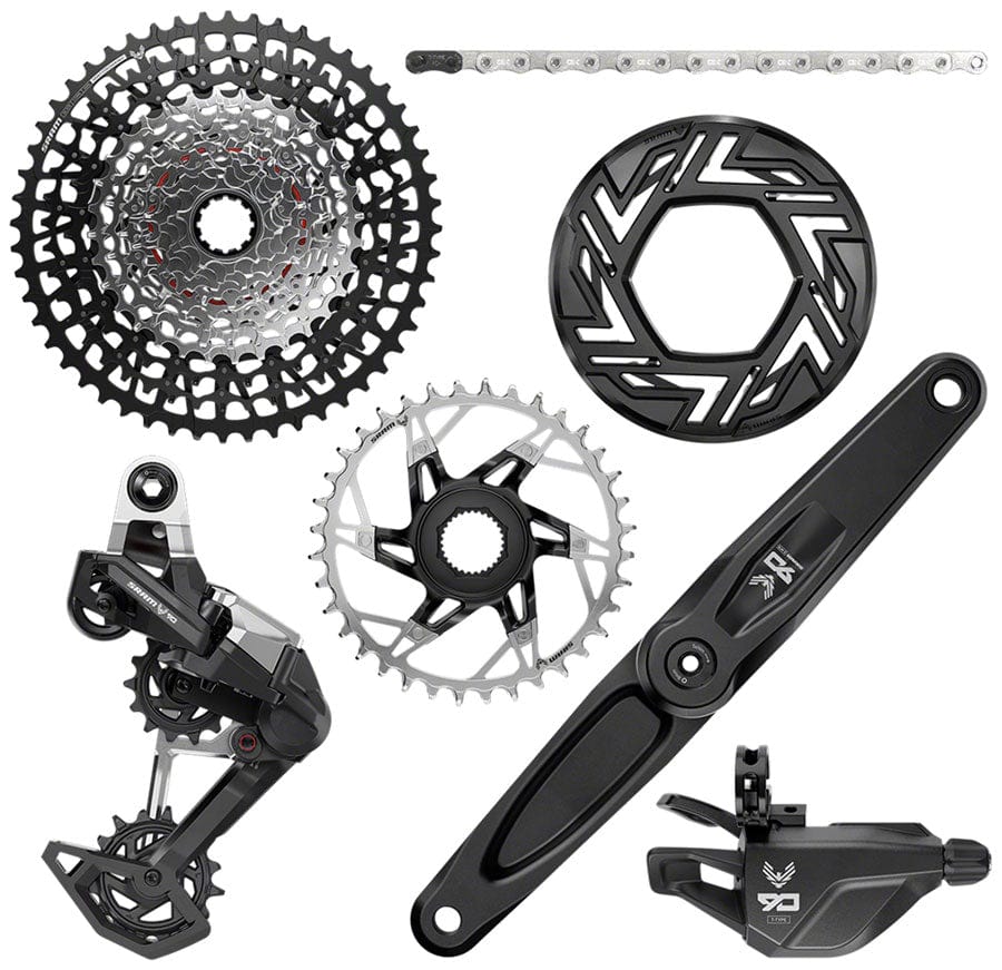 Featuring the same Full Mount derailleur architecture as it’s AXS Transmission siblings Eagle 90 is unquestionably robust. And for the just in case the derailleur body features replaceable outer and inner parallelogram links skid plates and a tool-free threaded cage assembly making it the most rebuildable derailleur we’ve ever built. At the heart of the system is a sleek and sturdy forged aluminum E-MTB crankset with a drive-unit specific T-Type chainring. Shifting under load is a signature of Eagle Transmission and this is made possible on 90 with an XS-1275 T-Type cassette that features full X-Sync technology and a premium double-click T-Type Actuation mechanical shifter. Hangerless Interface (UDH) frame compatibility only. Available in SRAM/Brose and Bosch specific chainring and crankset offset variants with “Gap Cap” for a seamless between crank and ring. Forged aluminum crank arms. Includes clip-on guard Eagle 90 shift lever features stealth architecture and MMX compatibility for seamless pairing with SRAM brakes. Cockpit tidying Shift Housing/Brake Hose clip included Dedicated single-click variant Shift lever is built with modern shift ergonomics and a premium textured aluminum lever touchpoint Black XG-1275 features 10-52t range and full X-SYNC technology for best inboard and outboard shifting performance under load Full Mount Eagle 90 derailleur is the most rebuildable Eagle Transmission derailleur with replaceable B-Knuckle Inner/Outer Links Bash Guards Bushings Cage and Cage Assembly Includes GX Eagle Transmission Flattop chain with solid pins fully approved E-MTB use