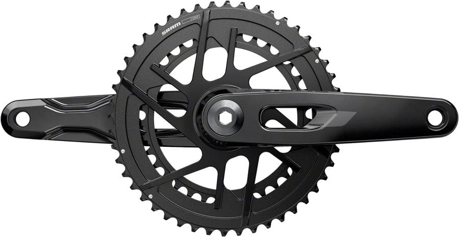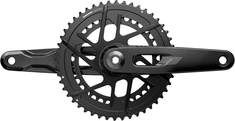 SRAM's most advanced aluminum road crankset is their most stunning. Careful engineering has resulted in crankarms that optimize stiffness to weight ratio with material only where it’s needed. Integrated chainrings deliver flawless shifting in ranges that fit your needs with the whole package coming in over 50 grams lighter than the previous generation.Modern aluminum crankarms and aluminum 2x chainring optimizes stiffness to weight ratio with material only where it’s needed X-Range gearing technology gives you more range and a smoother gear progression so you’re always in the right gear 2x aluminum intergrated chainring offers crisp and accurate front shifts DUB bottom bracket adds durability and simplicity (Bottom bracket sold separately) 45mm chainline