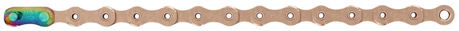 The chain is the heart of the Eagle drive train completely re-engineered for 1x systems and the innovative X-Sync 2 chainrings. It offers longer wear with less friction and less noise than previous SRAM chains.Flowlink design eliminates square edges on outer plates to reduce friction and wear Recessed chain rivet contact area allows ultra-high joining strength with zero pin protrusion PowerLock non-reusable connecting link is included Titanium Nitride surface treatment reduces friction and enhances wear