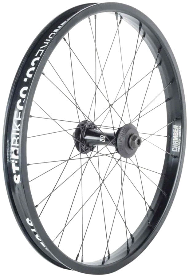 Rampage Pro front wheel features a low flange aluminum hub shell with precision sealed bearings female axle and 3/8" chromoly bolts. It is laced 3X with 14G spokes and brass nipples to the Stolen Chamber rim designed with a multi chamber system to increase strength while decreasing weight.Low flange aluminum hub shell with Heat-treated chromoly female axle (3/8") CNC alloy cones and Sealed 6000 bearings Stolen Chamber rim with multi wall design 6061 Aluminum rim with welded construction 17mm sidewall height 36mm wide 36H