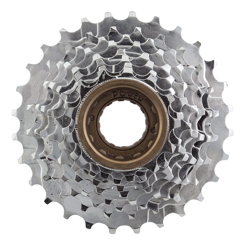 S.I.S. compatible 8 speed freewheels. Nickel plated silver finish