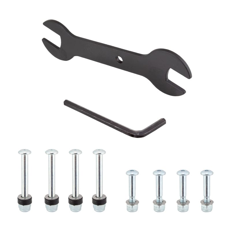 Replacement parts for the Sunlite Cargo Trailer. Tune up kit includes 8 bolts in 2 sizes 6/8mm box end wrench and allen wrench. Stocked for replacement only - speak with your local salesmen for details