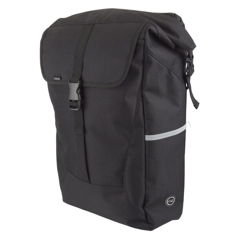Large main compartment and 1 heavy-duty compartment. Integrated carrying handle. Mounts on rear rack with hooks and T-bar. Bag volume: 1100 c.i.. Sold individually