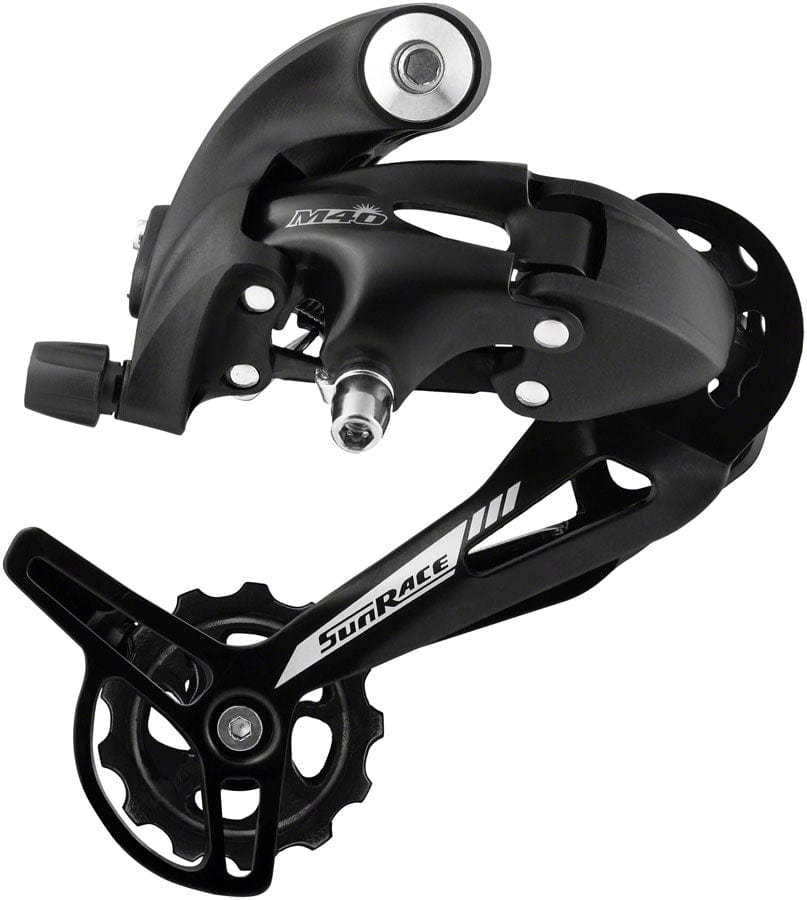 The SunRace M4 Rear Derailleur is designed for 7 and 8-speed MTB drivetrains.