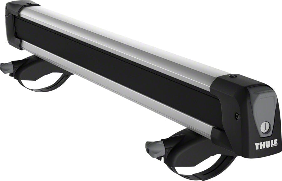 Thule's low profile ski carrier offers multiple mounting options for greater carrying versatility.Low profile for improved aerodynamics Smart vertical spring system adjusts to accommodate all thicknesses of skis and reduces the carrier height when unloaded Two sets of height extension T-track feet included to raise carrier and protect vehicle roofs for skis/boards with tall bindings Fits Thule rack systems round bars and most factory racks with both T-track and SpeedLink around the bar mounting options Large push button is easy to open with gloves on and it opens by pushing in a natural 'up' motion Soft rubber arms protect skis during transport Thule’s One-key lock cylinders lock the skis/boards to the carrier and the carrier to the vehicle (locks included) Corrosion-resistant aluminum arms are durable and strong