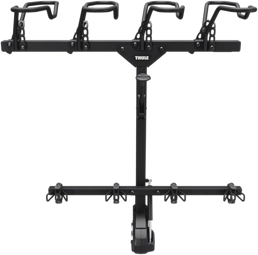 Thule ReVert hitch rack provides weight assistance for both raising and lowering while fully loaded supporting heavy bikes and e-bikes with a weight capacity of 55 lbs (25 kg) per bike. Crafted from high-quality steel it ensures durability and long-term use. The innovative tilt release lever retains the rack position for hassle-free handling and the roll-in and roll-out front wheel basket design minimizes the need for lifting bikes. The pushdown tilt release lever offers trunk accessibility even when bikes are mounted. Its optimized mast height enables the easy transport of bikes with long wheelbases (up to 53") while generous bike spacing reduces the risk of bike-to-bike contact. Designed to protect your bikes from any frame or fork damage the rack also features durable wheel straps to ensure bikes are firmly secured during transit.Provides weight assistance for raising and lowering the rack even when fully loaded Supports heavy bikes and e-bikes up to 55 lbs (25 kg) per bike Made with high-quality steel for durability and long-term use Innovative tilt release lever and pushdown tilt lever for easy handling and trunk accessibility Roll-in/roll-out design and generous bike spacing minimize lifting and reduce bike-to-bike contact