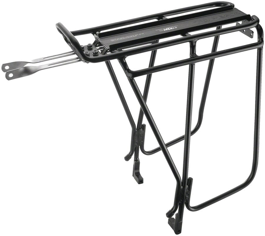 Fits 26" 27.5"(650B) & 700C Wheels w/ Disc Brakes Topeak's toughest tubular aluminum rear rack designed for heavy-duty long distance touring. Specifically developed for bikes equipped with disc brakes. Integrated side bar provides a lower pannier attachment point-allowing more space for cargo on the rack top. QuickTrack compatible for use with any MTX TrunkBag rear basket and pannier bag.Includes mounting bracket (26.5 cm) Solid fender top RedLite Mount Tail Light Mount