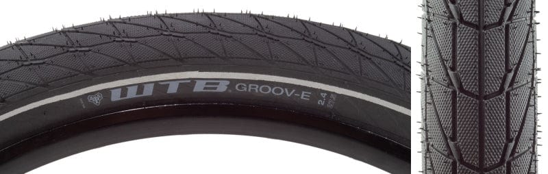WTB`s first tire specifically designed for use with E-bikes. Textured tread surface and water channeling grooves provide impressive traction in all conditions. A reflected strip on the sidewall further improves safety and visibility in low light. DNA - Proprietary 60A durometer rubber compound offers the ideal mix of rolling efficiency and traction for Cross-Country and trail riding applications. EBIKE25 - has achieved a passing rating for use with E-Bikes up to 25kph. REF - Reflective accents or hot patch on sidewall