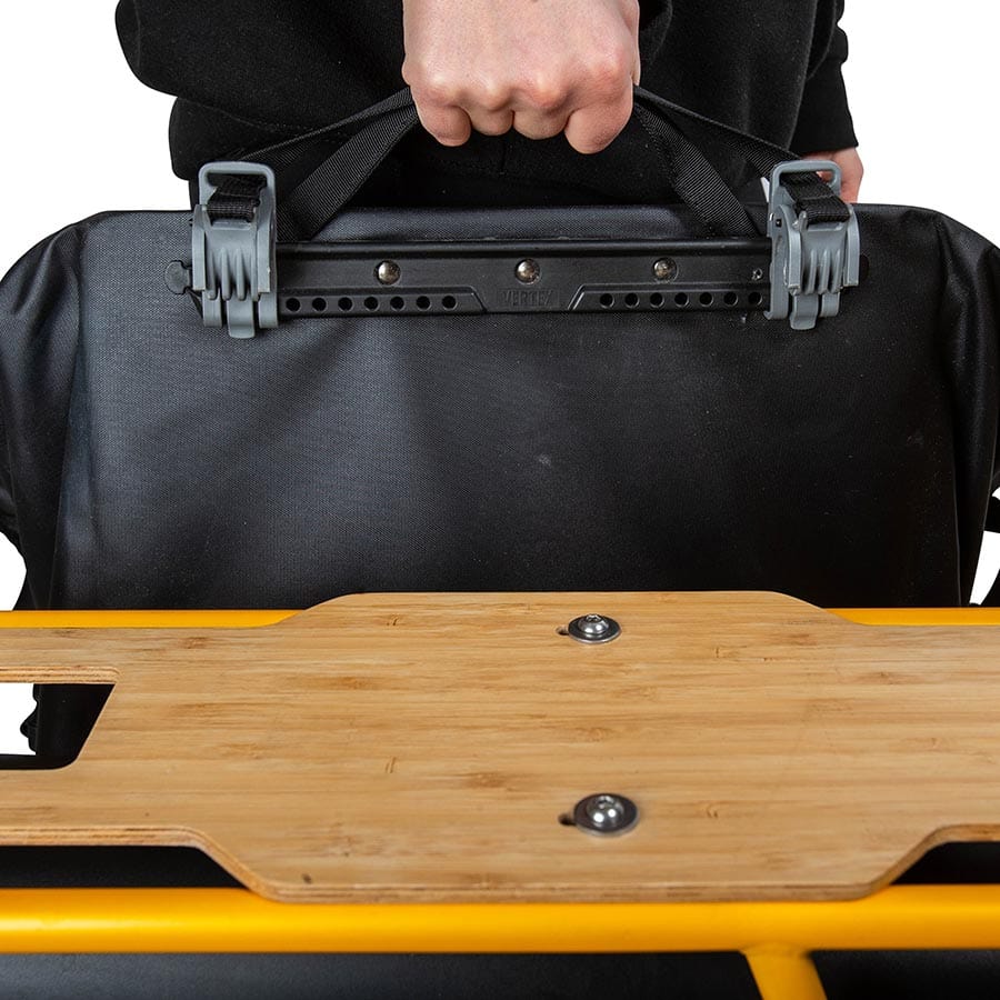 • The new Baguette bag is both adjustable and waterproof thanks to its roll-up-to-close system and its nylon 1000D outer layer Its zips and clips and durable materials make this bag the perfect companion for all occasions, regardless of the weather With a carrying capacity of 30L/ 8 gallons, you have no excuse not to take advantage of all that space Lightweight, waterproof, durable and easy to use Heading into a store? Add the shoulder strap with the easy clip on, and lift-off to allow this bike bag to transform into a classic shoulder bag Compatible with the Kombi, Kombi E5, Mundo (V3 and newer), Boda Boda Not compatible with Bamboo Decks made before 2017